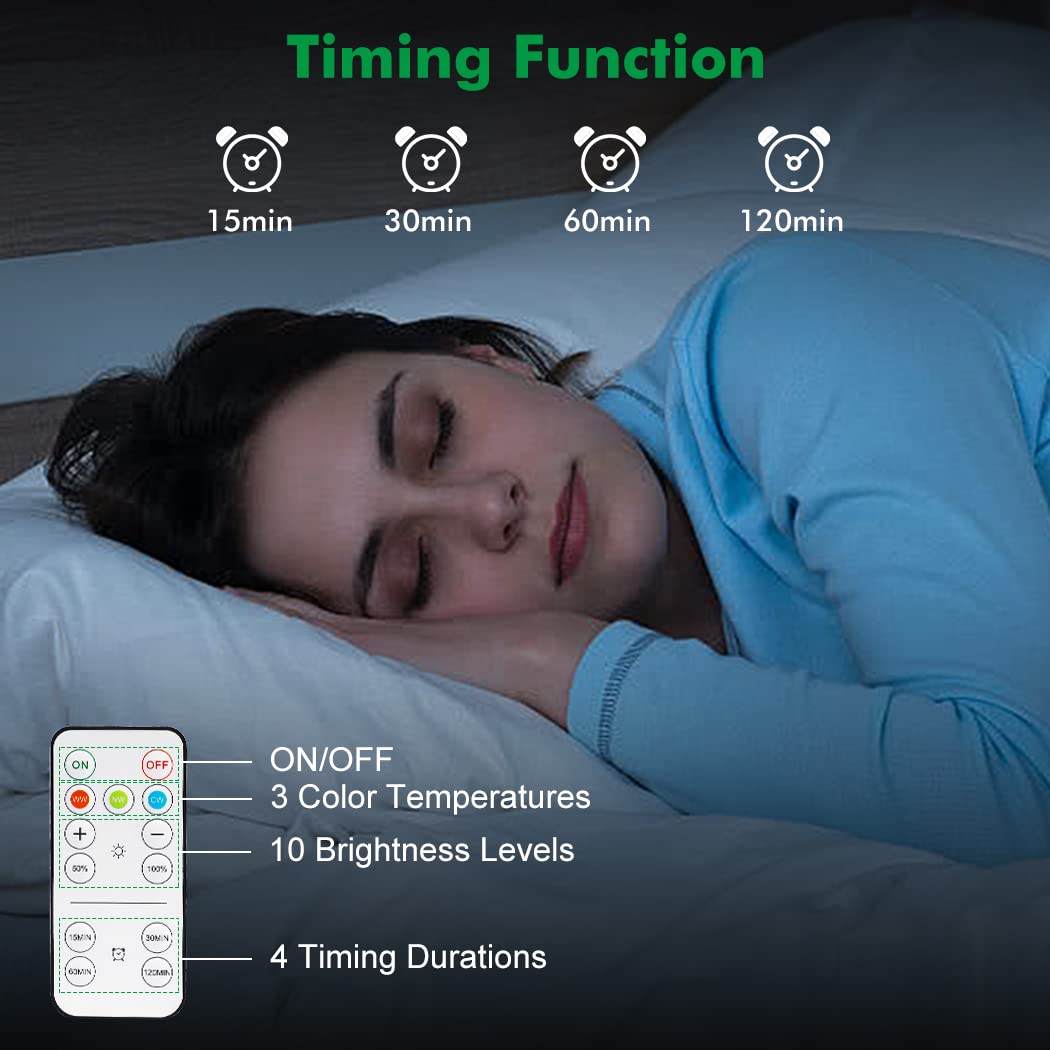 - Timing Eye Protection: 4 timing options: 15min, 30min, 60min, and 120min.Don't worry about wasting power. The wireless wall lamp adopts enough lamp beads that ensure the illuminance and uniformity of the light and the continuity of the spectrum, no UV or IR Radiation, no dazzle or flicker with eye protection function.
